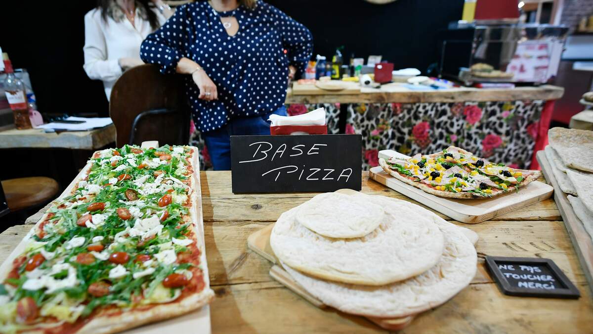 The pizza is made with a wheat flour dough and uses lots of cherry tomatoes, broccoli rabe, olives, garlic, and chilies as toppings. It also uses a lot of olive oil.